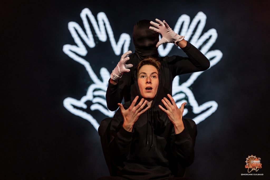 C’est 45 minutes de spectacle avec deux comédien.ne.s qui passent de rôles en rôles pour incarner cette multitude avec leur corps et leurs petites mains.